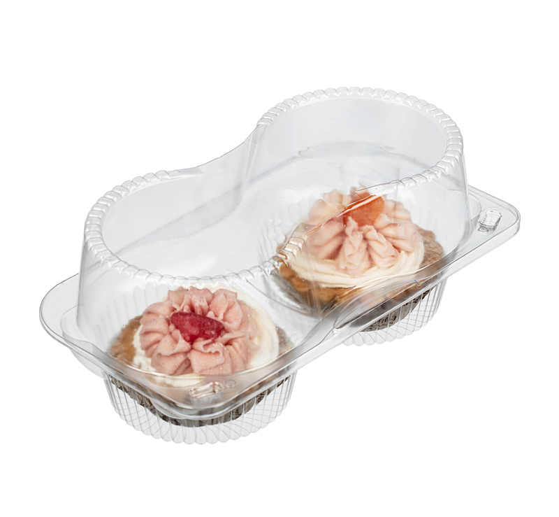 Двухсекционный контейнер-ракушка РК-2212С2КВ предназначен для упаковки двух кексов ромовая баба.