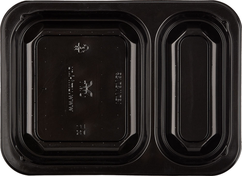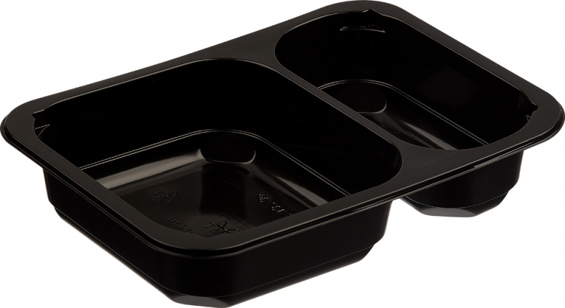 Используется под запайку для фасовки мясных и рыбных полуфабрикатов, готовых блюд, деликатесов. Можно разогревать в СВЧ-печи. Имеет 2 секции.