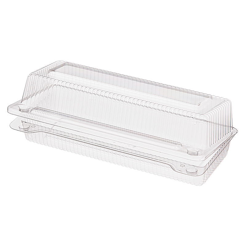 Контейнер-ракушка РК-23 предназначен для фасовки различных кондитерских изделий, в том числе для пирожных и рулетов.